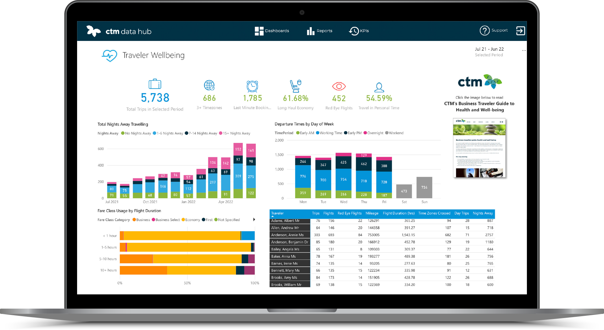 CTM’s SMART suite of technologies helps manage every aspect of travel, from planning to reporting. Its predictive analytics feature can suggest cost-saving opportunities and flag non-compliant bookings before approval.