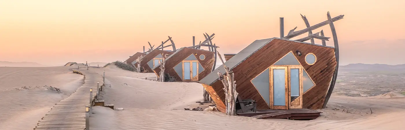 For a truly remote and surreal luxury safari, Natural Selection Safaris offers curated journeys across Namibia’s Skeleton Coast. Guests travel between futuristic eco-camps by plane, exploring towering dunes, desert-adapted wildlife, and ancient shipwrecks.